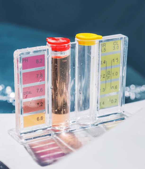 - Les pastilles de test : ces pastilles contiennent un réactif qui change de couleur en fonction du taux de chlore, du pH, etc. Il faut prélever un peu d'eau de la piscine et ajouter la pastille, puis comparer la couleur obtenue avec le tableau de couleurs présent sur le boîtier.