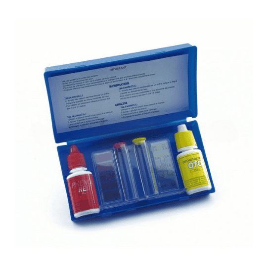 - Trousse d’analyse liquide : elle va forcément contenir une notice explicative, un comparateur colorimétrique et des réactifs liquides à verser dans le flacon contenant l'eau de la piscine. Une fois dissous, l'eau se colore et il faut vérifier les résultats sur le nuancier de couleur pour pouvoir interpréter les résultats.
