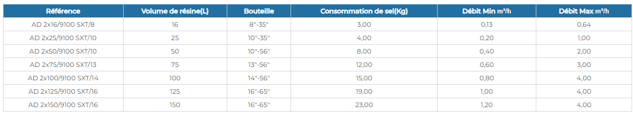 Adoucisseur en duplex – Fleck 9100 SXT – 1″ ou 3/4″